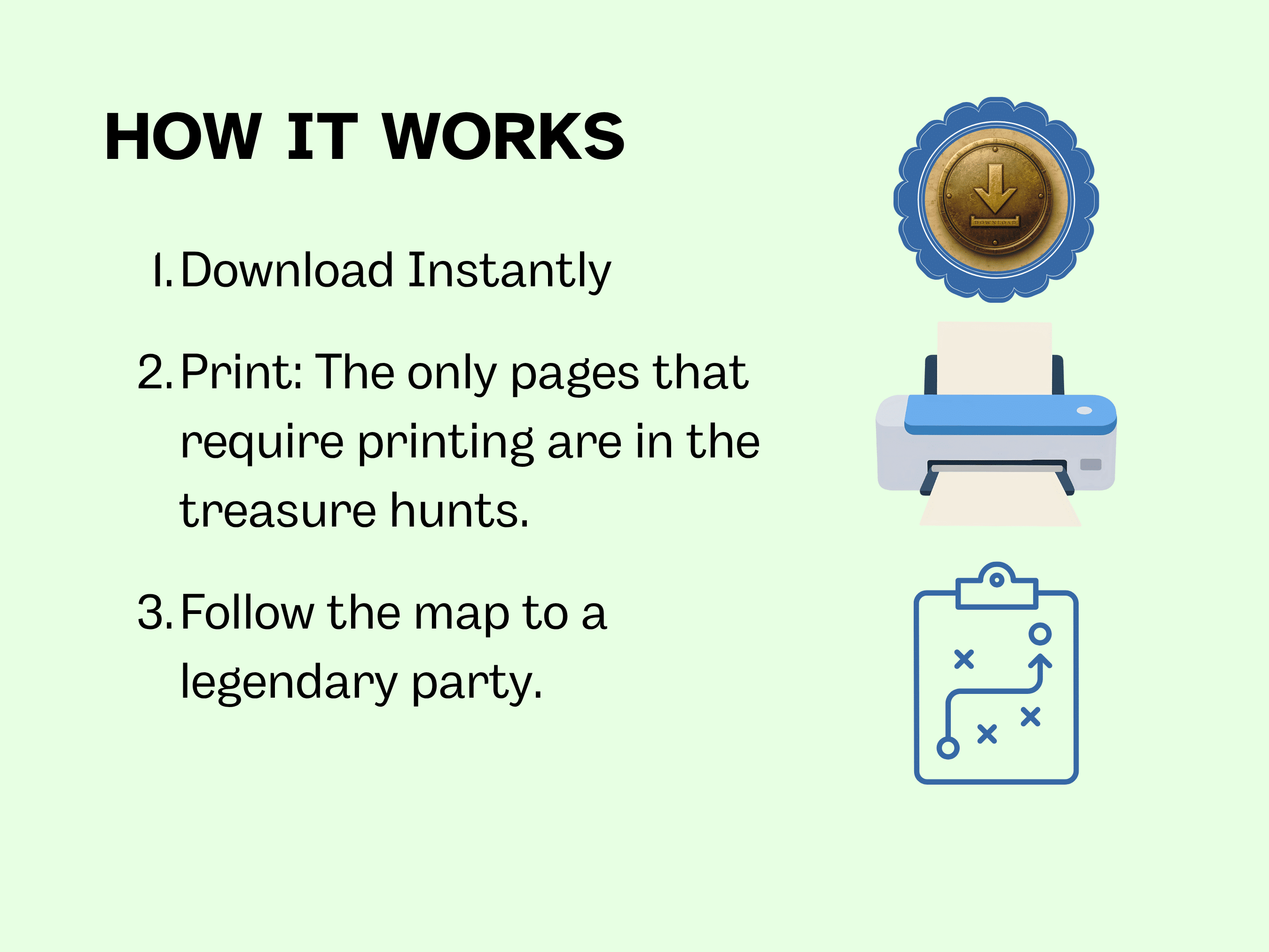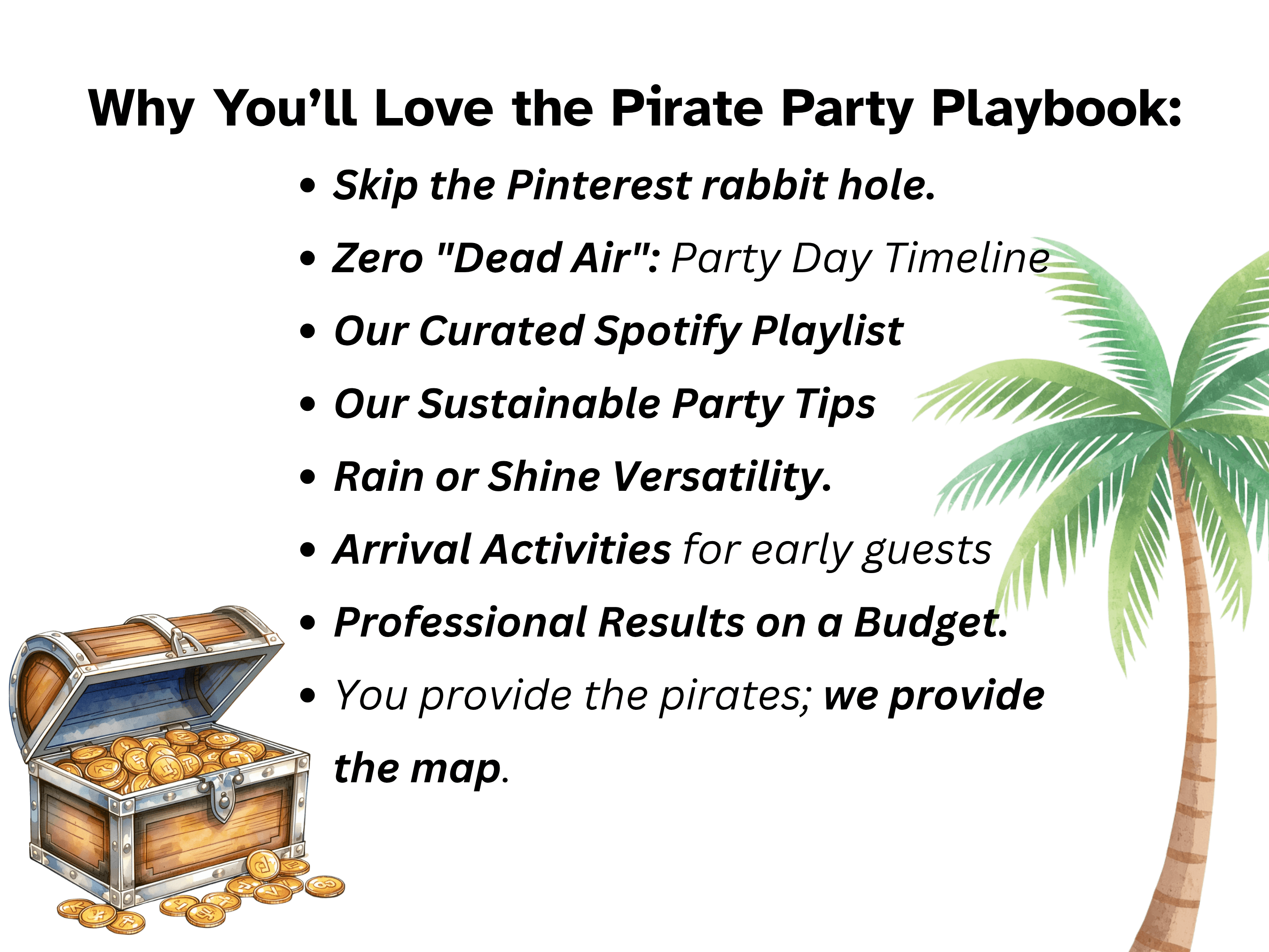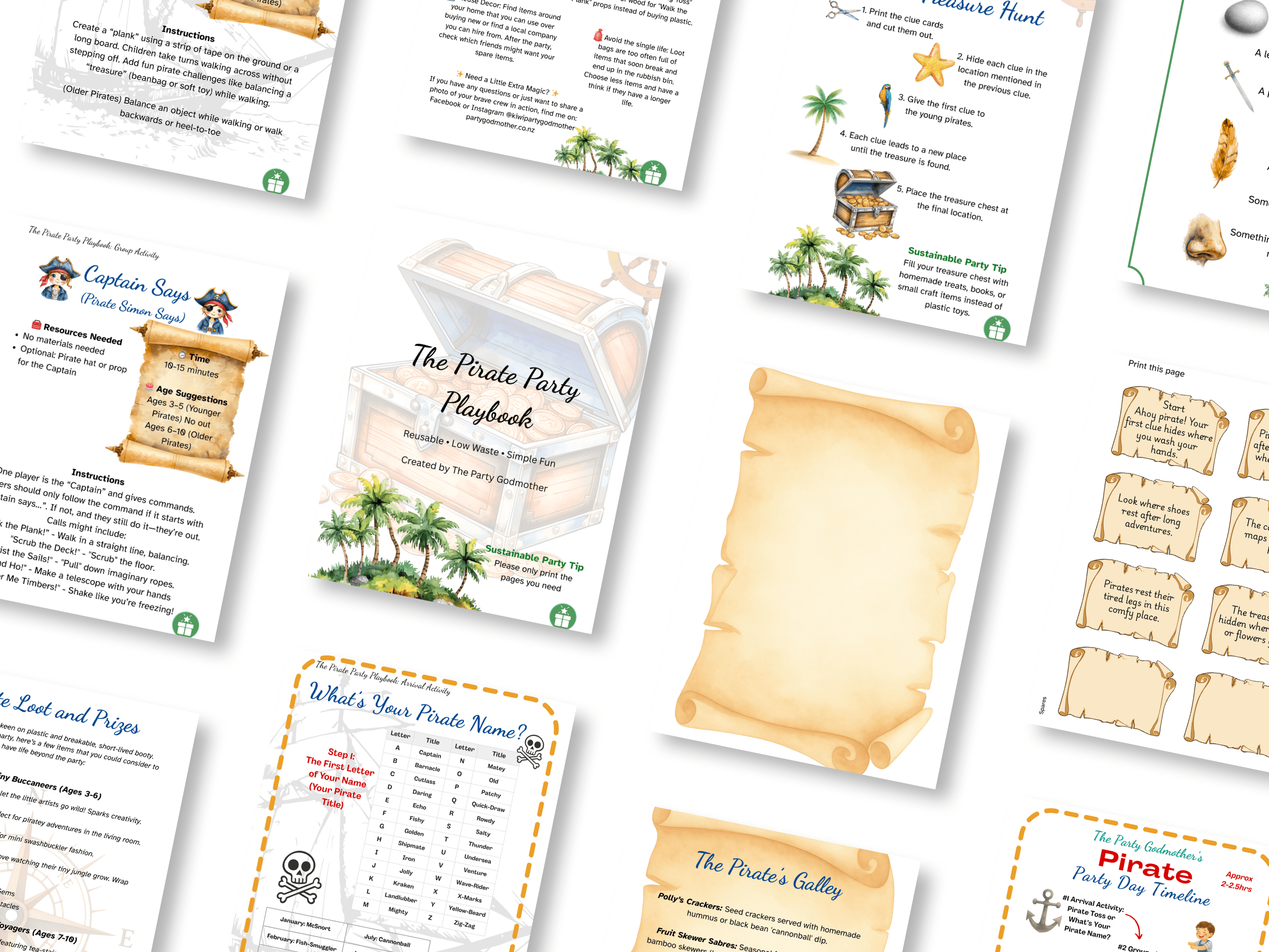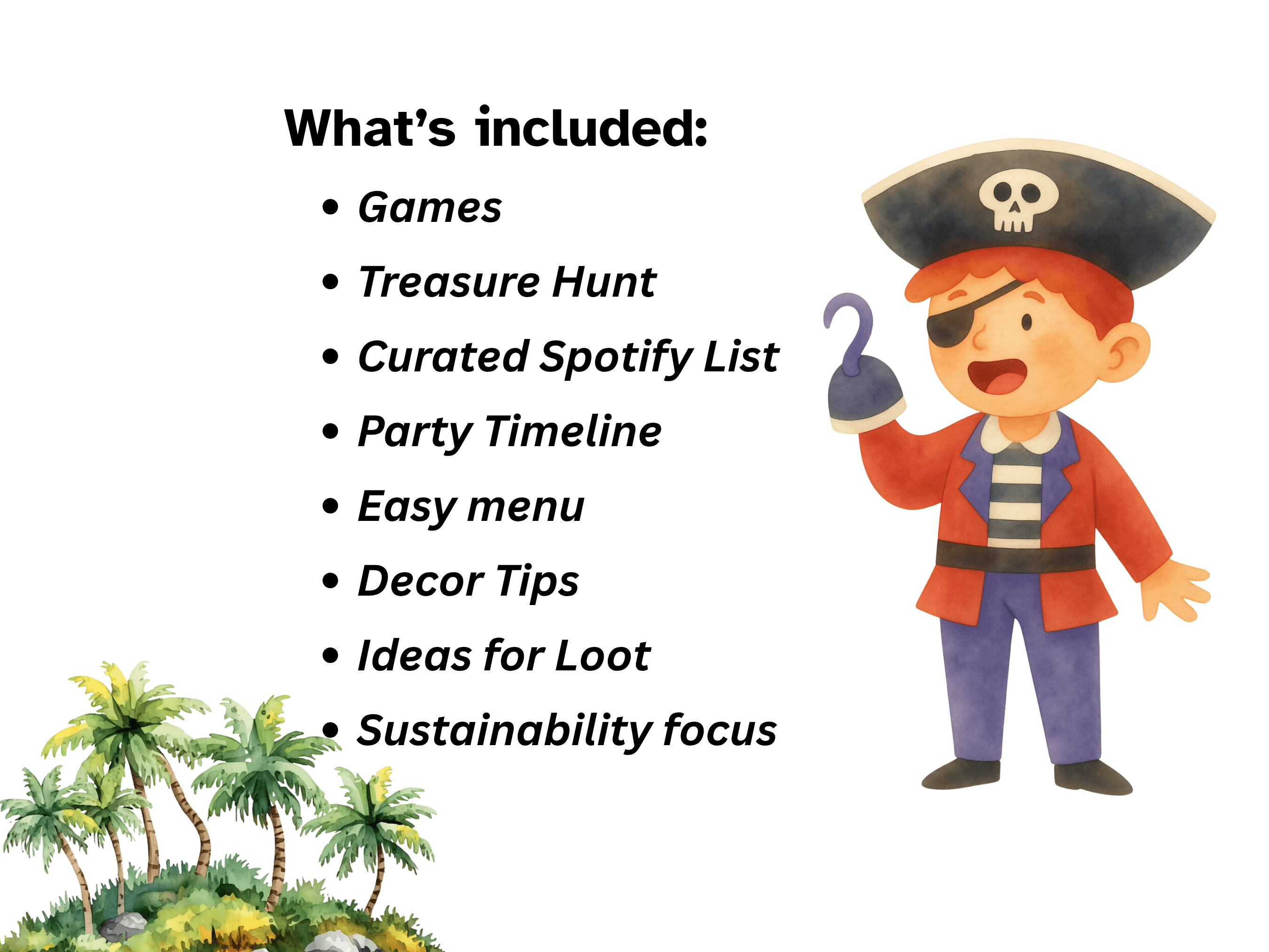 Skip the late-night planning and the plastic waste. This 18-page digital adventure is your complete, stress-free guide to hosting a legendary pirate party. From a timed master itinerary and a curated Spotify playlist to a full rhyming treasure hunt and eco-friendly game ideas, I’ve done all the heavy lifting for you.