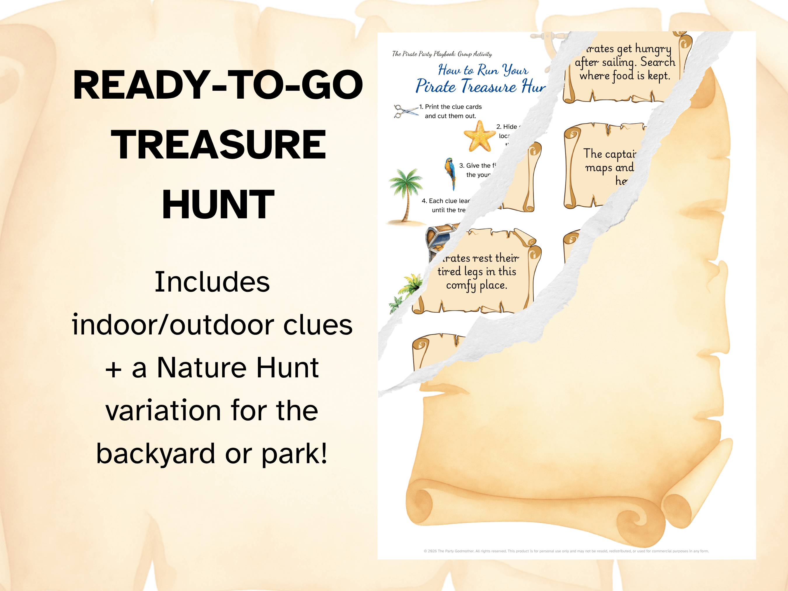 • 🏴‍☠️ The Main Event: A full Pirate Treasure Hunt with a DIY Map and rhyming clues (plus a Nature variation for backyard explorers!).